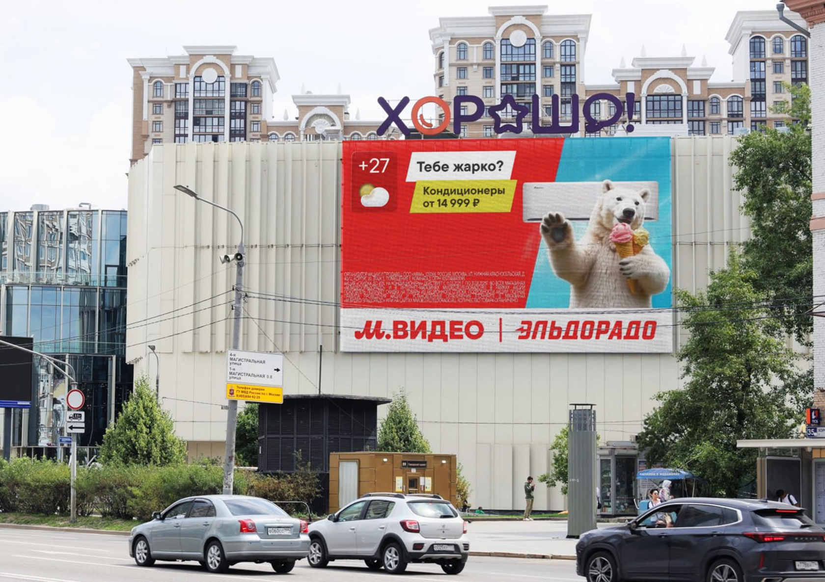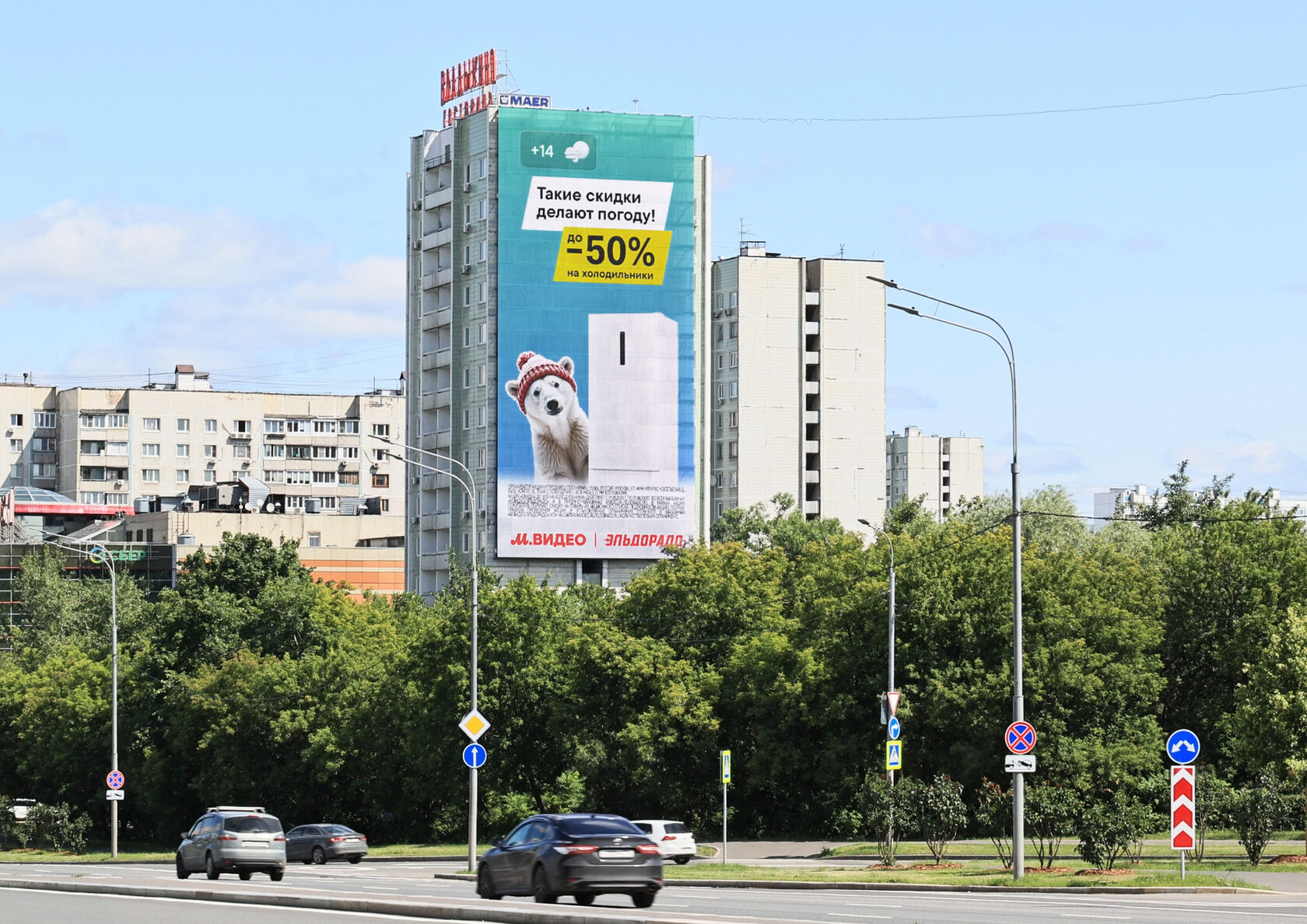 Выполненные работы: Благодаря триггерной системе на базе запатентованной технологии ЛАЙТ, на медиафасадах отображалась актуальная погода в городе, при температуре ниже 25° жители видели креатив с холодильником. При температуре 25° и выше демонстрировался креатив с кондиционером. Такой подход обеспечил персонализированное взаимодействие и повысил вовлечённость аудитории.